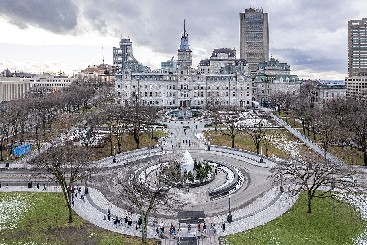 Le grand parterre de l'Assemblée nationale, c'est pas mal la cour arrière pour les gros partys d'été et l'inévitable Palais de Bonhomme en pleine tempête.